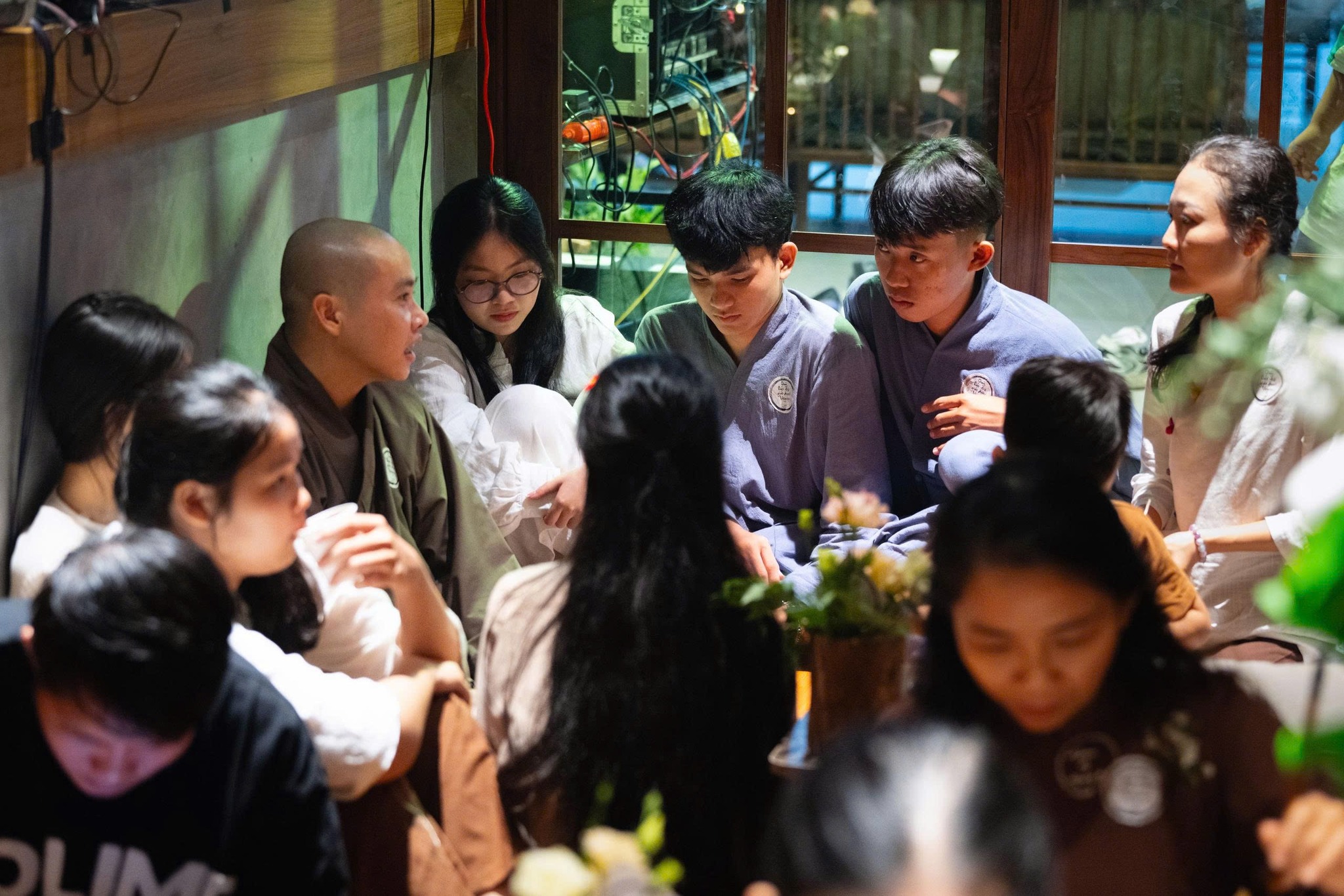 Chúng con chỉ kịp chợp mắt khoảng 4 tiếng, sau đó tiếng chuông báo thức lại reo lên, không cần phải gọi nhau, chúng con tự giác thức dậy, vệ sinh cá nhân sau đó tiếp tục di chuyển tới Chùa Vĩnh Nghiêm. Buổi sáng tinh sương thật đẹp, thật trong lành, nó cho con cảm giác thoải mái và dễ chịu vô cùng. Sáng nay, nhiệm vụ của chúng con là nhờ Thầy Yên Tử training cách bê trà, rót trà trong chánh niệm, cùng với đó là sắp xếp, trang trí lại gian hàng Vicaris Shopee.
