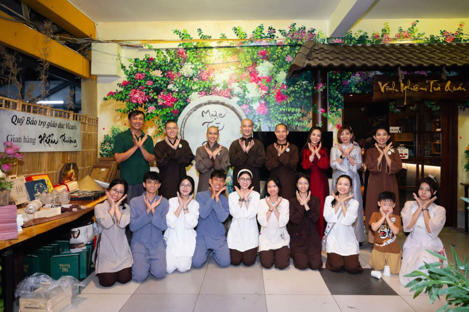 9 giờ 30 phút, những vị khách cuối cùng đã gửi lời chào tạm biệt thân thương và trở về, một số bạn nhỏ trong gia đình Vicaris cũng xin phép Thầy được về sớm vì ở xa. Chỉ còn lại Thầy, cô Hồng và một số anh chị ban chăm sóc. Chúng con mệt lã người nhưng vẫn cố gắng dọn dẹp đồ đạc, khung tranh,… để trả lại không gian cho Trà quán. Biết tụi con mệt nên cô Hồng đã dành tặng cho tụi con những ly nước thật ngon ( con được uống matcha latte ngon lắm ạ). Chúng con hoàn thành nhiệm vụ lúc 1 giờ sáng và trở về lại thiền đường. Kết thúc một ngày làm việc hết công suất, đặt lưng lên tấm thảm nơi thiền đường, chúng con thiếp đi mà không hay biết gì. Cho đến hôm sau con mới được hồi sức và dành thời gian để cảm nhận, nhìn lại toàn bộ buổi Workshop. Cảm xúc đầu tiên của con là vui và hạnh phúc – bởi con được phụ Thầy, phụ anh chị tổ chức buổi Workshop ý nghĩa này, dù chỉ là những điều nhỏ thôi. Tiếp theo, con cảm thấy tự hào và biết ơn lắm, đây là lần đầu tiên Quỹ tổ chức một chương trình có quy mô lớn và đầu tư nhiều như vậy, và thật sự chương trình đã thành công viên mãn ạ. Con thấy thật hạnh phúc khi con có nhiều trải nghiệm mới trong đời, tích lũy nhiều hơn vốn sống, mở rộng tấm lòng mình hơn để đón nhận cũng như trao đi tình yêu thương. Đối với con, chương trình Workshop “ Mực, trà và thi” là một dấu ấn tuyệt đẹp trong hành trình trưởng thành của con.
