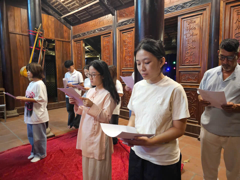 Sau những phút giây tất bật học tập và làm việc, đêm Trung thu chính là cơ hội để gia đình Vicaris cùng lắng lòng mình và cảm nhận được sự hiện diện trọn vẹn của nhau. Các thành viên cùng tụng thời kinh trang nghiêm và hướng tâm cầu nguyện cho bình an, hạnh phúc và tình thương lan tỏa.