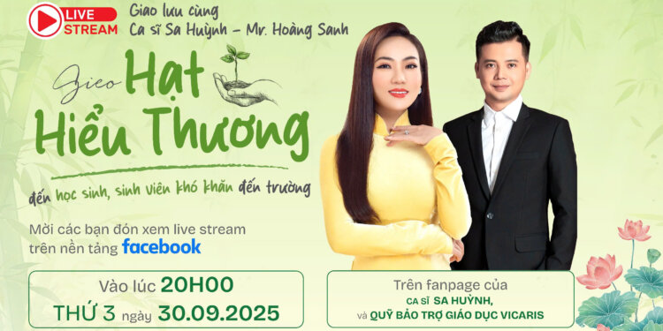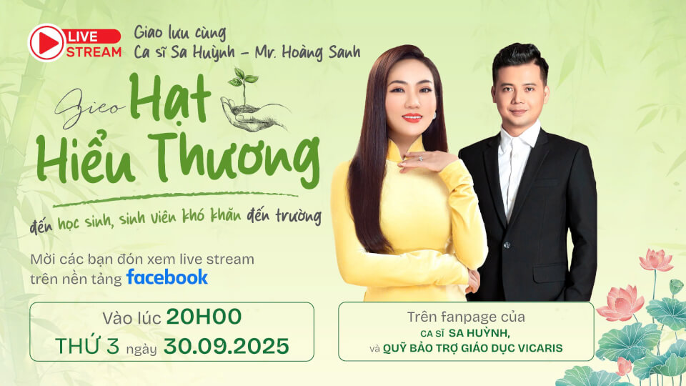 📍 Trực tiếp trên fanpage Ca sĩ Sa Huỳnh & Quỹ Bảo trợ giáo dục Vicaris