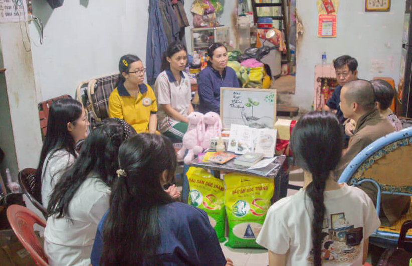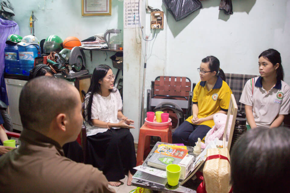 Chiều ngày 20.9.2025, khác với những chuyến đi trước, lần này các thành viên Quỹ Vicaris không tìm đến những miền quê xa xôi mà ngay lòng thành phố hoa lệ – căn nhà cấp 4 cũ kỹ trong con hẻm ở P. Tân Hoà (TP.HCM), nơi sinh sống của hai chị em Ngọc Nhi (lớp 11, Trường THPT Nguyễn Khuyến) và Ngọc Diệp (lớp 7, Trường THCS Lý Thường Kiệt). Có thể nói, đây là chuyến đi bảo trợ gần nhất nhưng đầy xúc động trong hành trình “gieo hạt hiểu thương” của Quỹ.